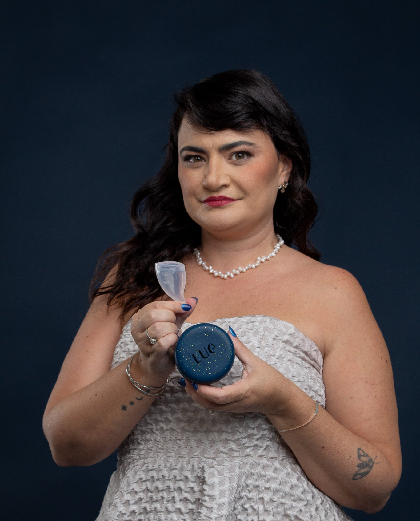 Um coletor menstrual anatômico, elegante e funcional, criado para oferecer conforto, autonomia e praticidade ao longo do ciclo, acompanhado de um copo esterilizador que une higiene e design minimalista.